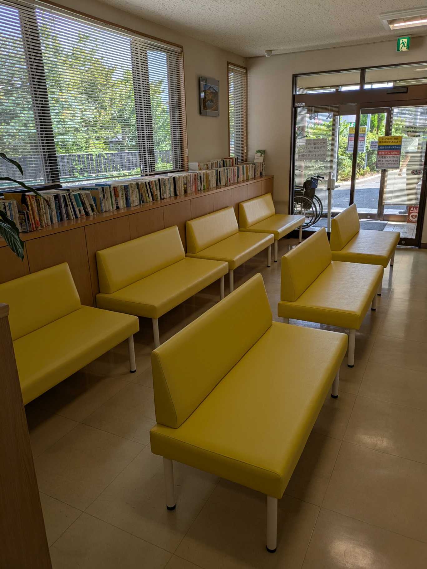 今までの緑を基調としたソファから、黄色を基調としたソファにへ変更、全体的に明るい感じになりました。